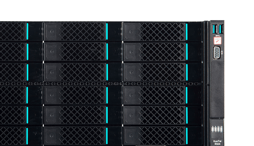KunTai R524 存储型服务器是ku酷游数码基于鲲鹏处理器推出的新一代 ARM数据中心服务器。。。主要面向存储业务,,,具有海量存储、、、、高性能、、、、低功耗以及易扩展的特点,,适合为大数据分析、、、、软件定义存 储等应用场景的工作负载进行髙效加速。。